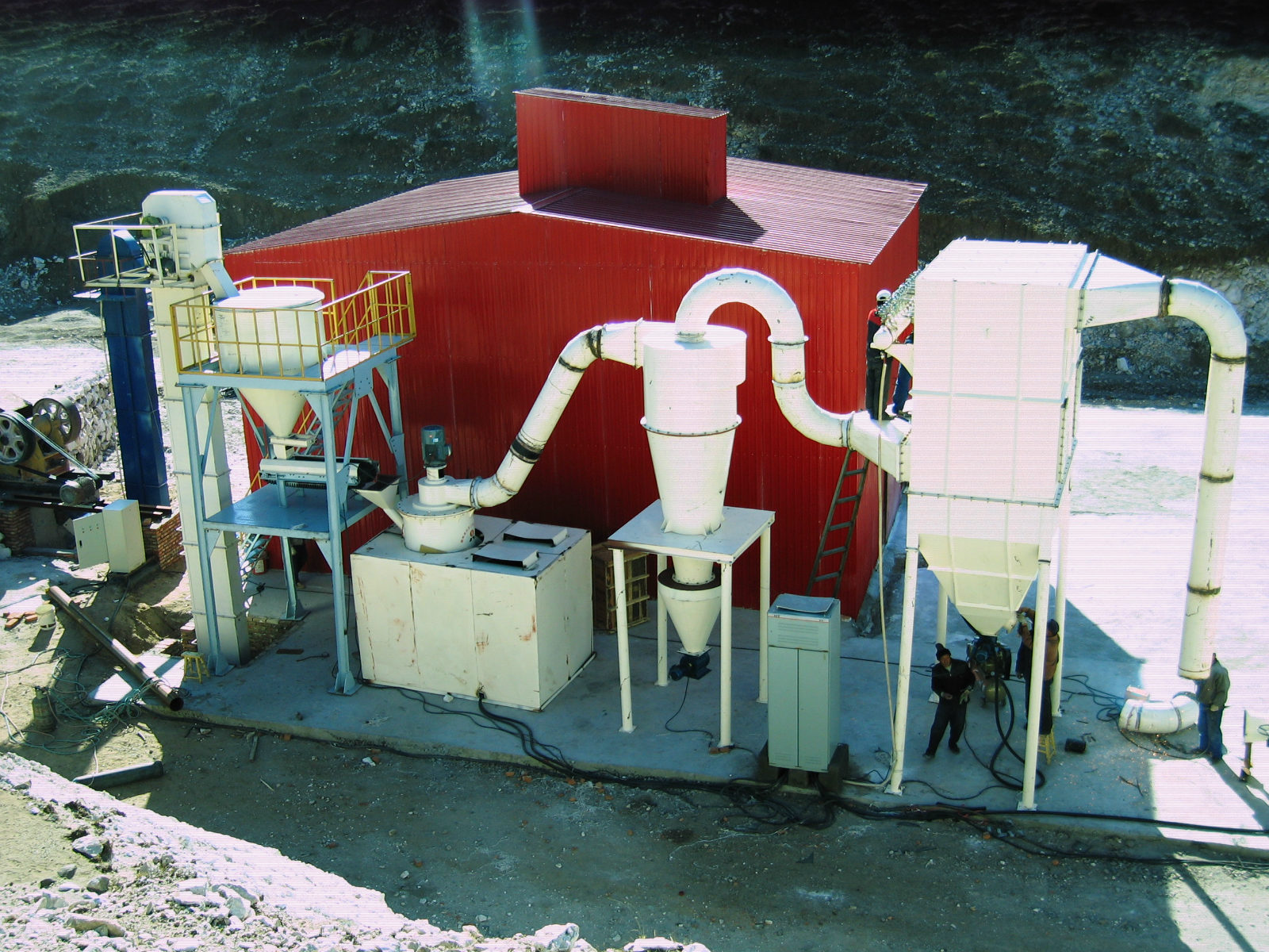 磨腔内无滚动轴承和螺钉,避免了轴承易损、螺钉松动而毁坏设备的问题。采用高效脉冲式除尘器,配置有消音器和消音房,降低了粉尘和噪声污染,环保效果极佳。